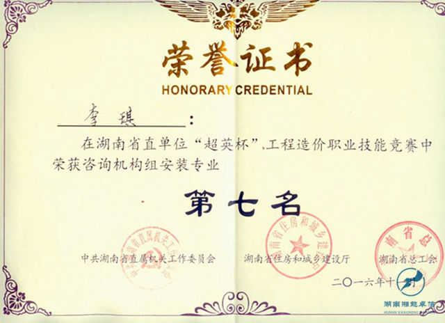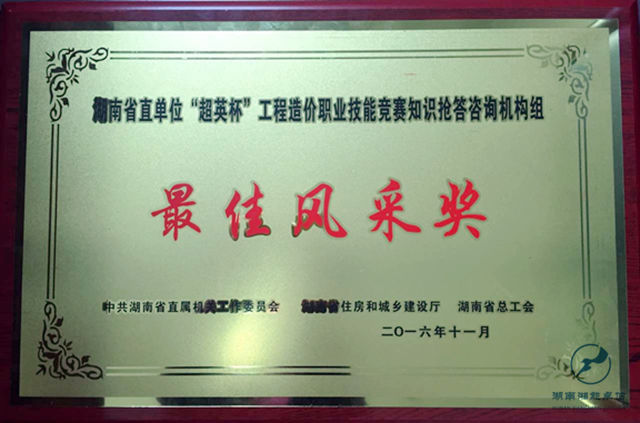 2016年11月28日, 由湖南省直屬機(jī)關(guān)工作委員會(huì)、湖南省住房和城鄉(xiāng)建設(shè)廳、湖南省總工會(huì)聯(lián)合舉辦,湖南省建設(shè)工程造價(jià)管理協(xié)會(huì)承辦的湖南省直首屆“超英杯”工程造價(jià)職業(yè)技能競(jìng)賽在長(zhǎng)沙建筑工程學(xué)校圓滿(mǎn)落幕。