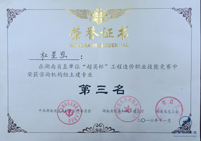 本次競(jìng)賽歷時(shí)4個(gè)月,共有46家單位、339名選手參賽。經(jīng)過(guò)層層選拔、預(yù)賽、決賽、搶答賽等緊張激烈的比賽環(huán)節(jié),我司獲得省直組、咨詢(xún)組“團(tuán)體第一名”和搶答賽“最佳風(fēng)采獎(jiǎng)”。其中:杜星恩獲得“湖南省五一勞動(dòng)獎(jiǎng)?wù)隆?/span>和個(gè)人第三名;朱虛新獲得個(gè)人第五名;李琪獲得個(gè)人第七名。